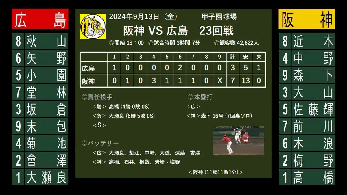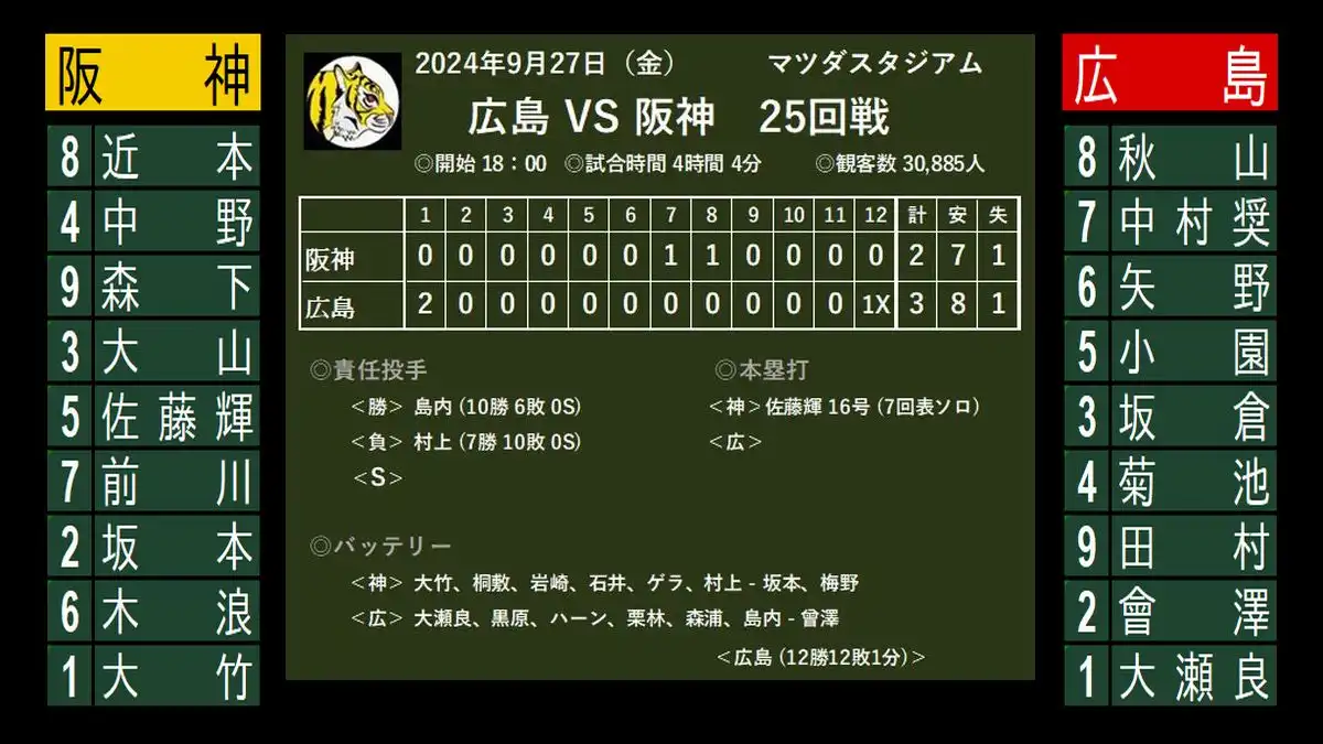 広島戦 (2024) ★(9/27) ペナントは白旗ですね・・・