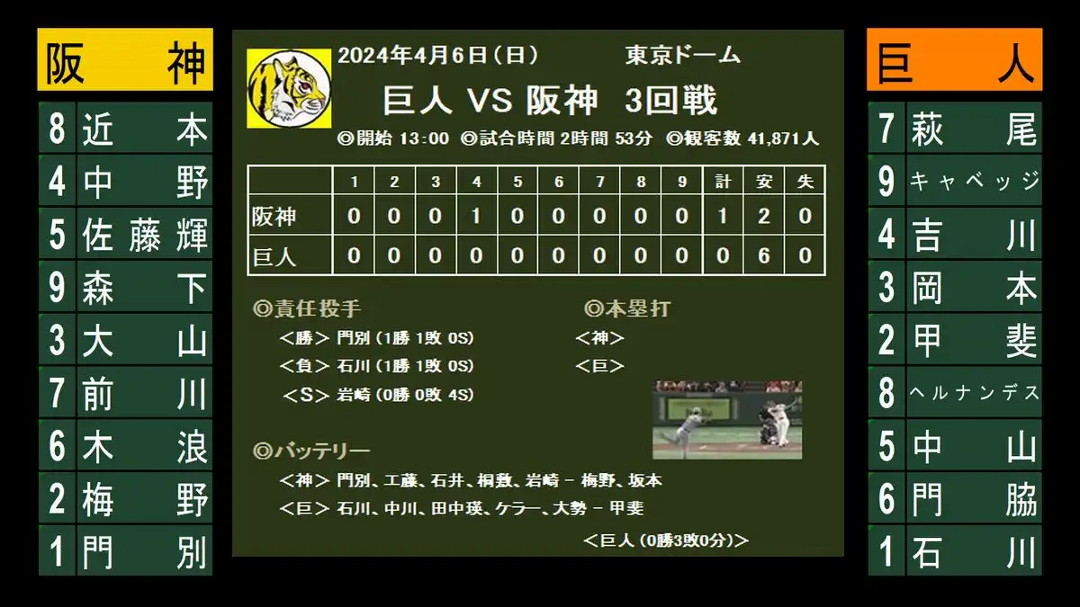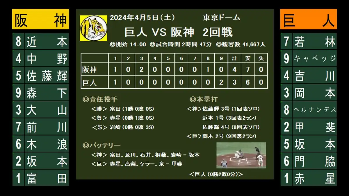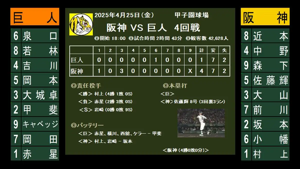 巨人戦 (2025) ☆(4/26)”魚雷バット”で決勝点!