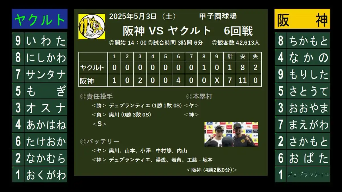 阪神 7-1 ヤクルト (11安打) *佐藤輝、止まらない!猛打賞で2打点*中野、2安打2盗塁でチャンスメイク 名古屋で三連敗した時にはどうなるかと心配したが、ようやく ”楽しいGW” がやってきた~(^^)。 ヤクルトファンには申し訳ない...