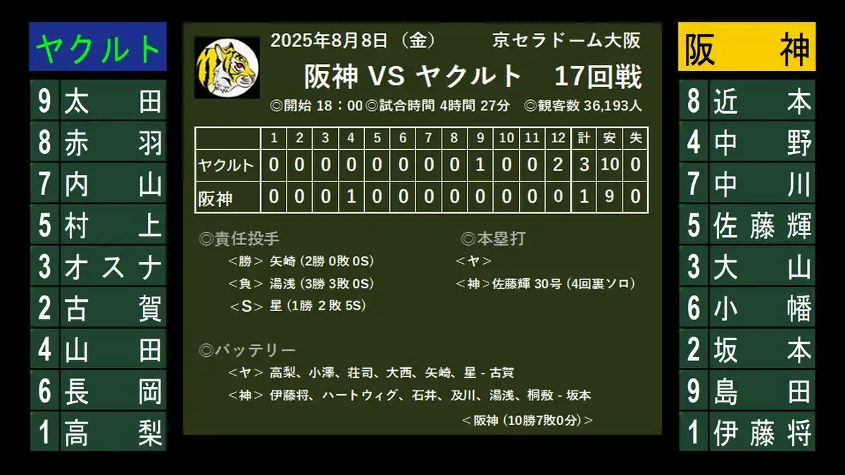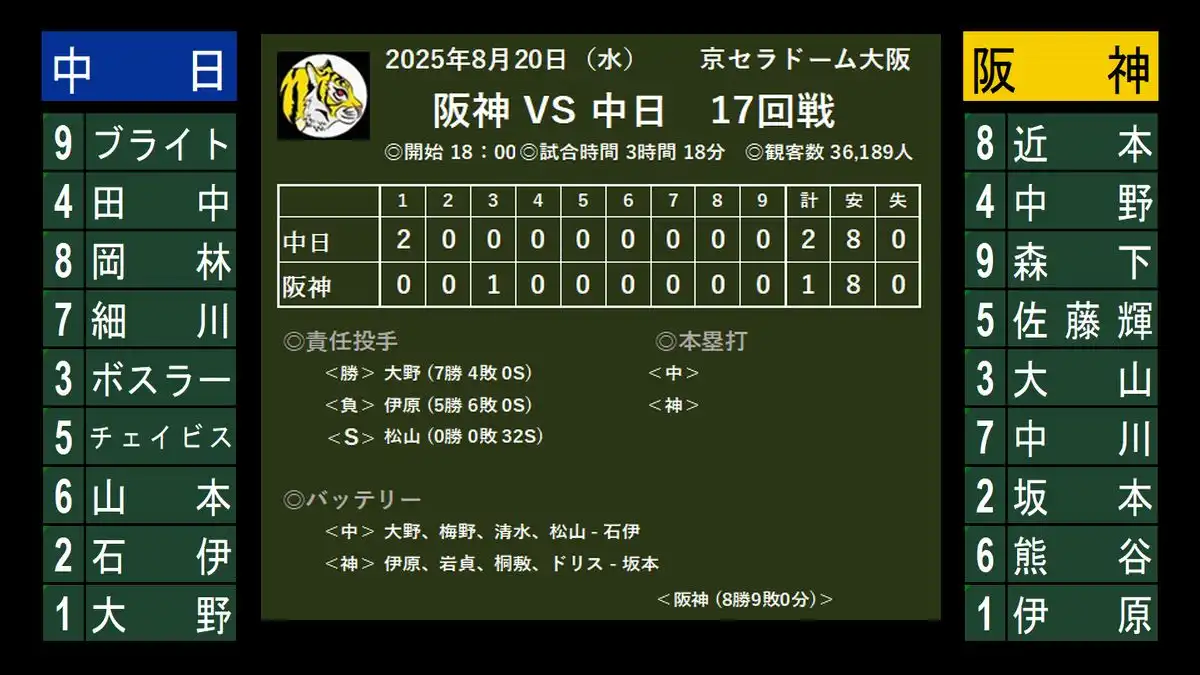 阪神 4-3 DeNA (9安打) *佐藤、左翼フェン直の先制タイムリー*伊原、5回1失点で298日ぶりの勝利! 昨日は先に” 4点 ”取られたが、今日はやり返した。じりじりとDeNAが迫ってきても、 ”伊原に久々の勝利を” というチームの...