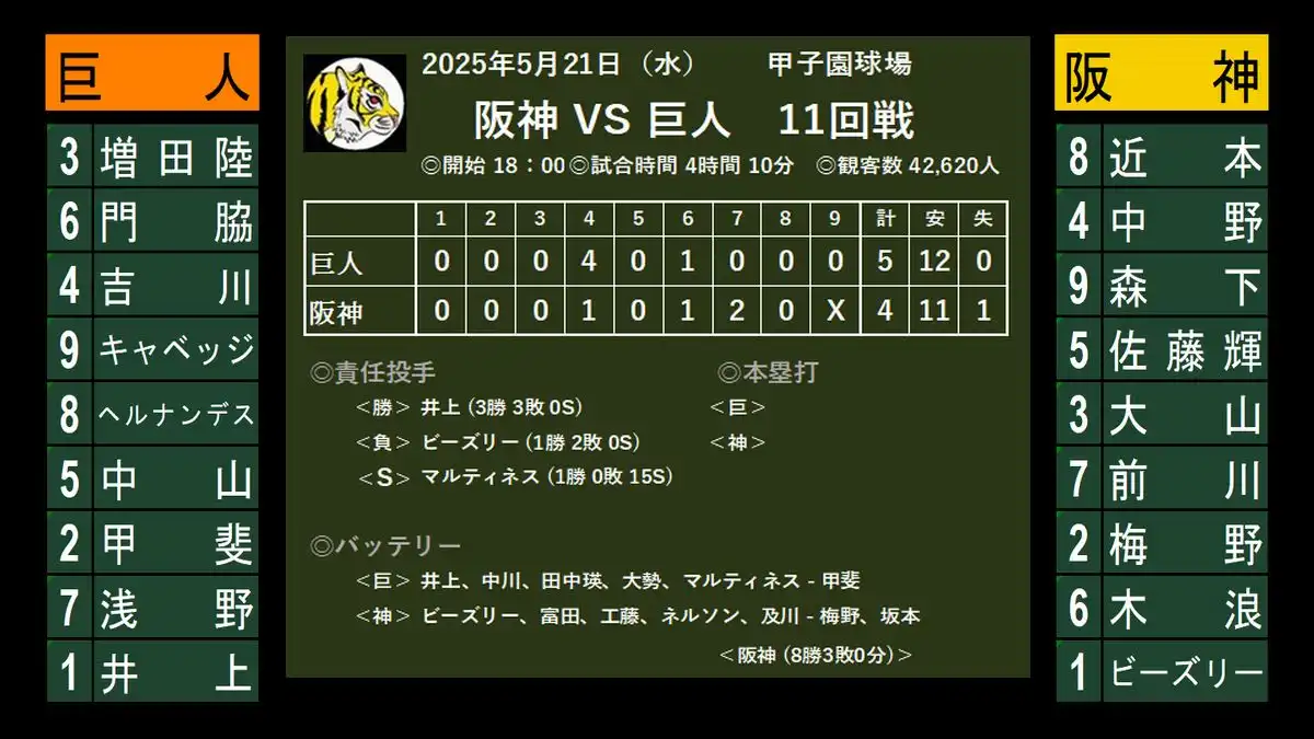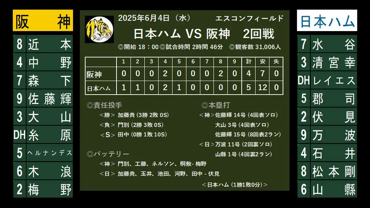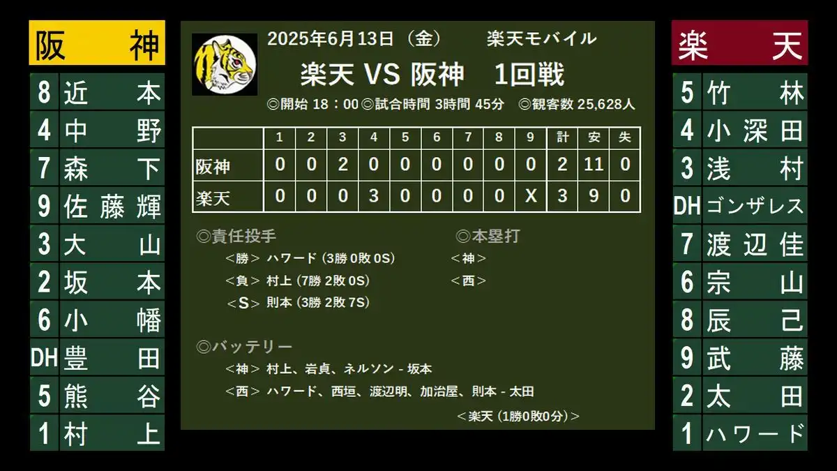 楽天 5-4 阪神 (14安打) 雨中の激闘、5時間10分。珍しく、 ”先発野手全員安打” でも勝てなかった・・・(^^;。 すっかり見慣れた、先行しても逆転負け。5連敗は今季初になる。桐敷はしばらく間をあけた方がよいかな。 今日は悪くなか...