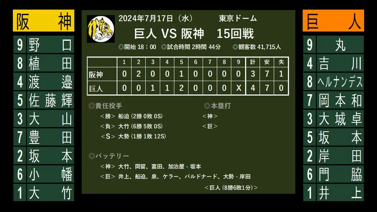 巨人 6-4 阪神 (7安打) 巨人は開幕からホームで阪神に勝利してないので、 ”必死のパッチ” で挑んできた。先制されて追いつくも、先発の門別が、4回裏2死走者無しから与えた4失点が大き過ぎた。 門別は若いんだから、もっと ”荒々しさ” ...